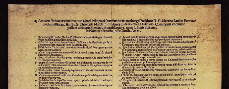 Hoy día es el 31 de octubre, “Día de la Reforma”. Fue en este día que Martín Lutero clavó la “Disputa del doctor Martin Lutero en el poder y la eficacia de las indulgencias” (comúnmente conocido como “Las noventa y cinco tesis”) a la puerta de la iglesia del castillo en Wittenberg, Alemania. “Las noventa y cinco tesis” son ampliamente consideradas como el catalizador principal para la Reforma protestante. Lo mismo sucede con un espíritu de esperanza para la reforma en nuestra vida que nos ofrecen estas noventa y cinco tesis a una iglesia moderna que está en gran necesidad de la misma.